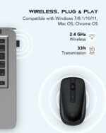 • Stable Connection laptop mouse: The 2.4 GHz Cordless Mouse delivers a powerful, reliable connection with a range of 10 meters (33 feet). It’s Plug & Play, too. There’s no need to install a driver. Simply insert the USB receiver into your laptop, and the mouse is ready to go.